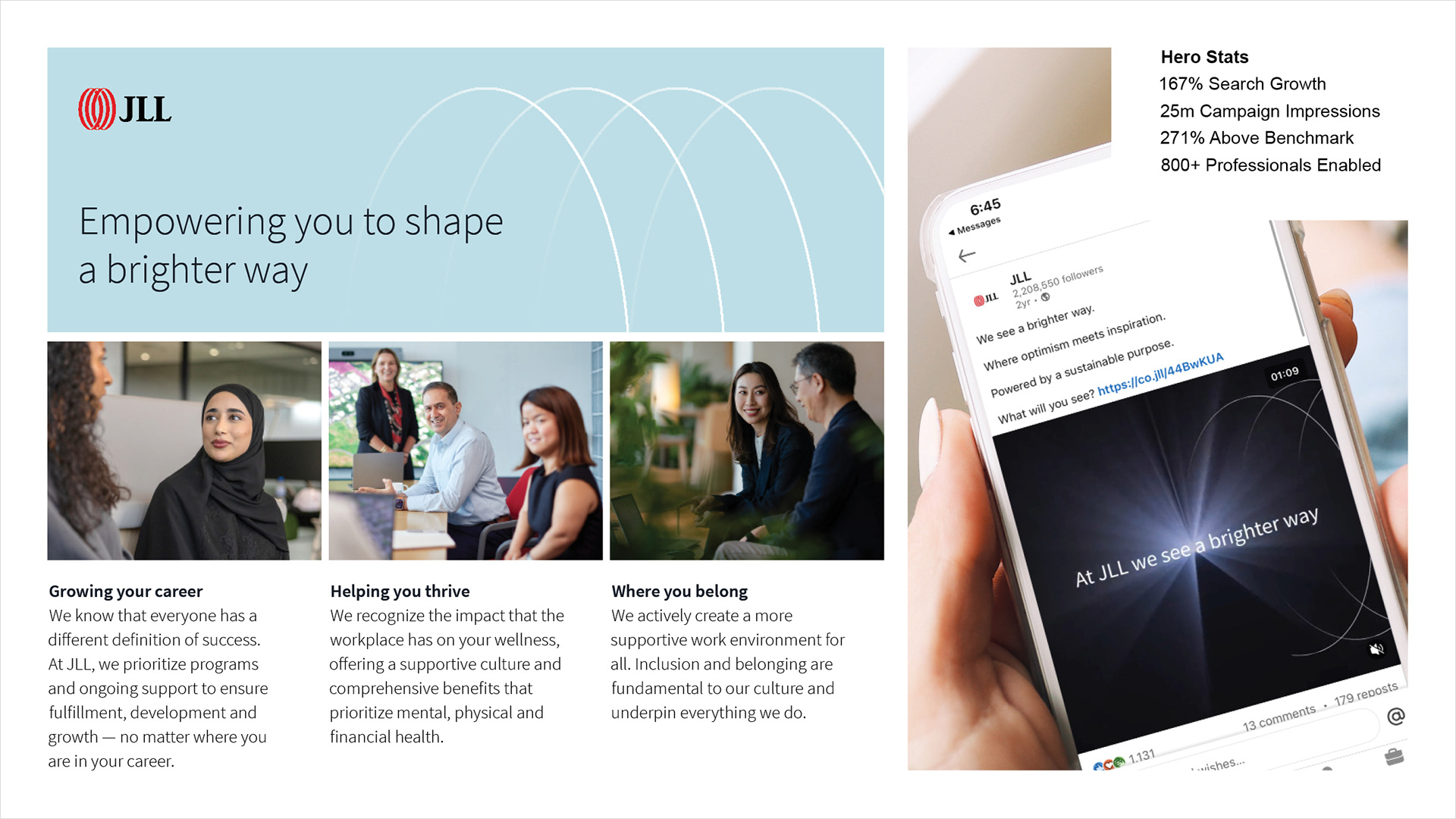 • Existing messaging and creative strategy was optimized for large firms, not individual real estate professionals