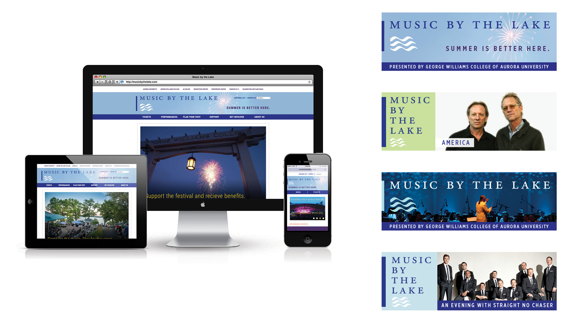• Photography direction was unfocused, failing to communicate the unique lakeside experience that made Music by the Lake distinct from any other summer concert series