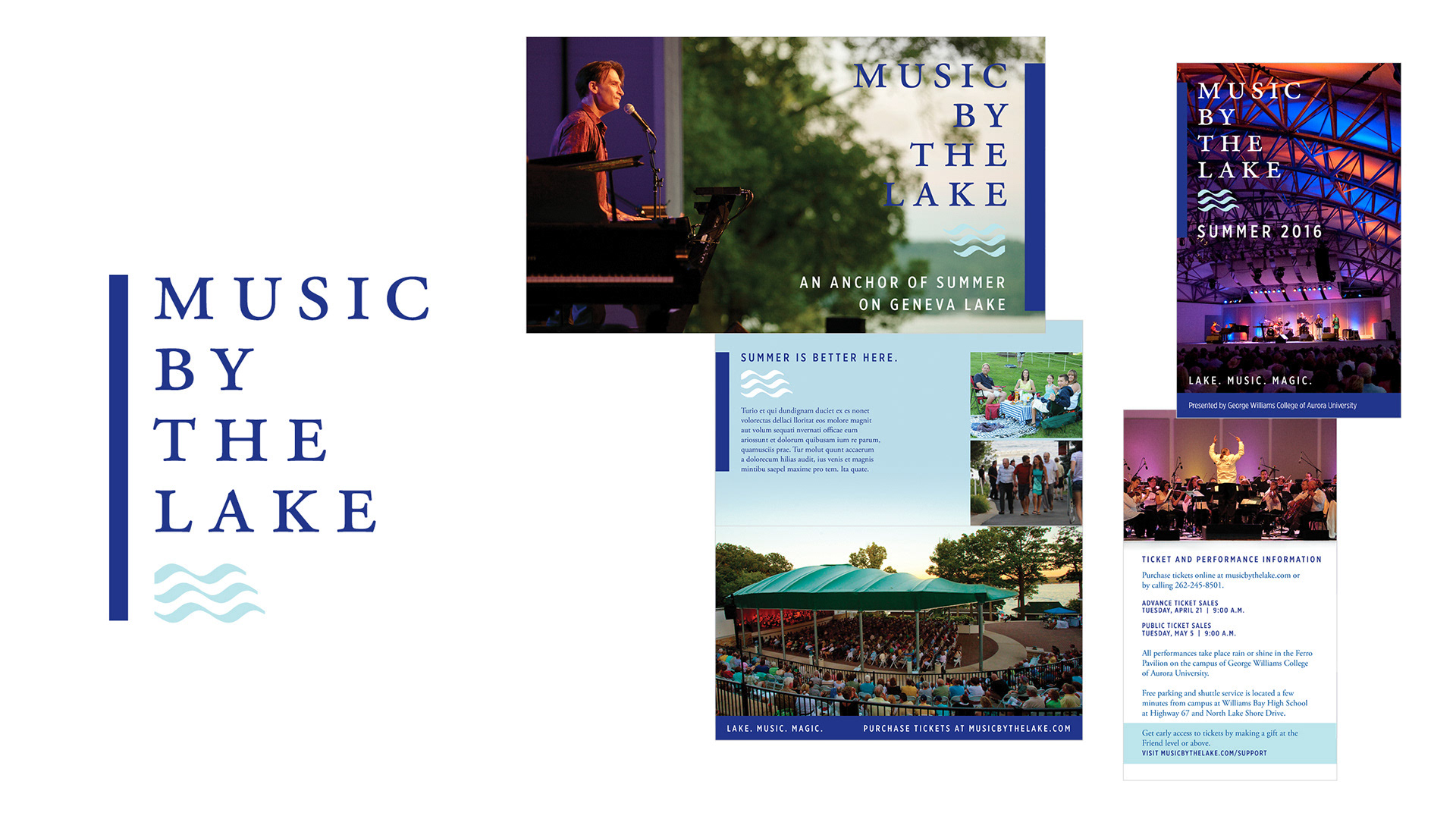 • A small but beloved summer concert series on the shores of Geneva Lake, Wisconsin needed to evolve its visual identity to attract new audiences without alienating the loyal community that had built it